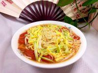 10.将泡面倒入碗中,放入黄瓜丝、鸡蛋丝即可