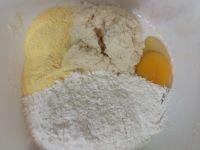 1.将面粉、玉米面、豆腐渣、鸡蛋放入盆中